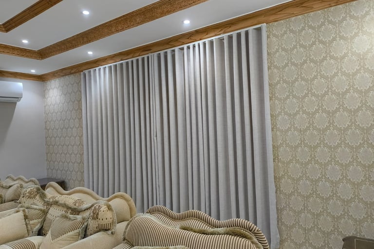 Classic Traditional Curtains Top tailoring shops in Riyadh offer a wide range of traditional curtains suited for homes with authentic Arab style. These feature warm colors like brown, gold, and dark red, made from luxurious fabrics such as velvet, brocade, and natural silk. Velvet fabric is one of the most popular choices for classic curtains, adding a touch of luxury to reception halls and Arab majlis. They often include intricate hand embroidery and traditional Islamic motifs reflecting Arab heritage. Prices vary based on fabric type and embroidery complexity, but they are worth the investment for the classic elegance they bring.